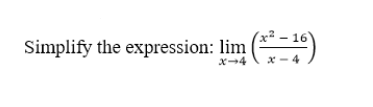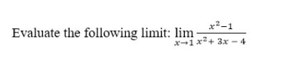 Evaluate the limit ( x – 4 ) / (x2 – x – 12) as x approaches 4.