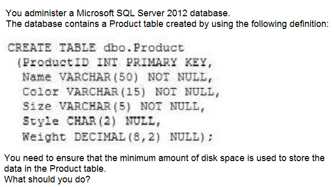 You administer a Microsoft SQL Server 2012 instance.